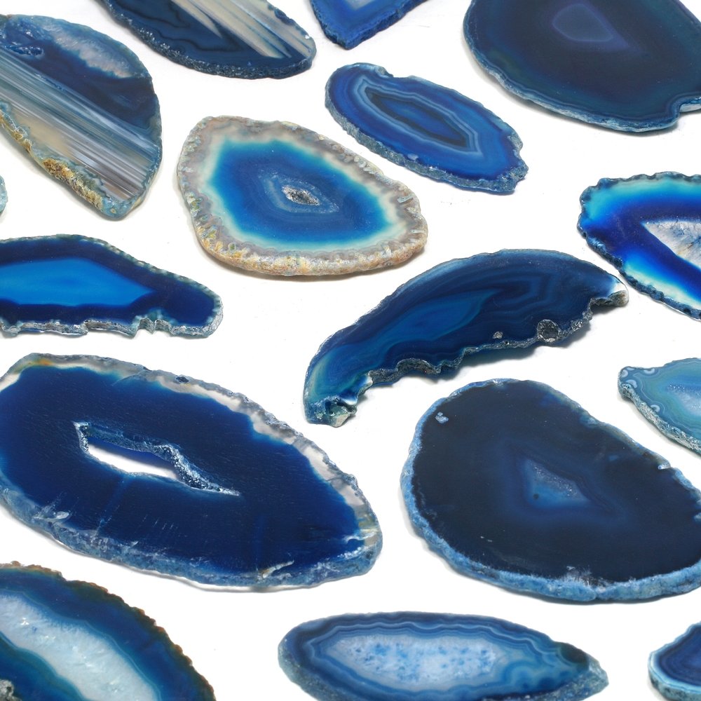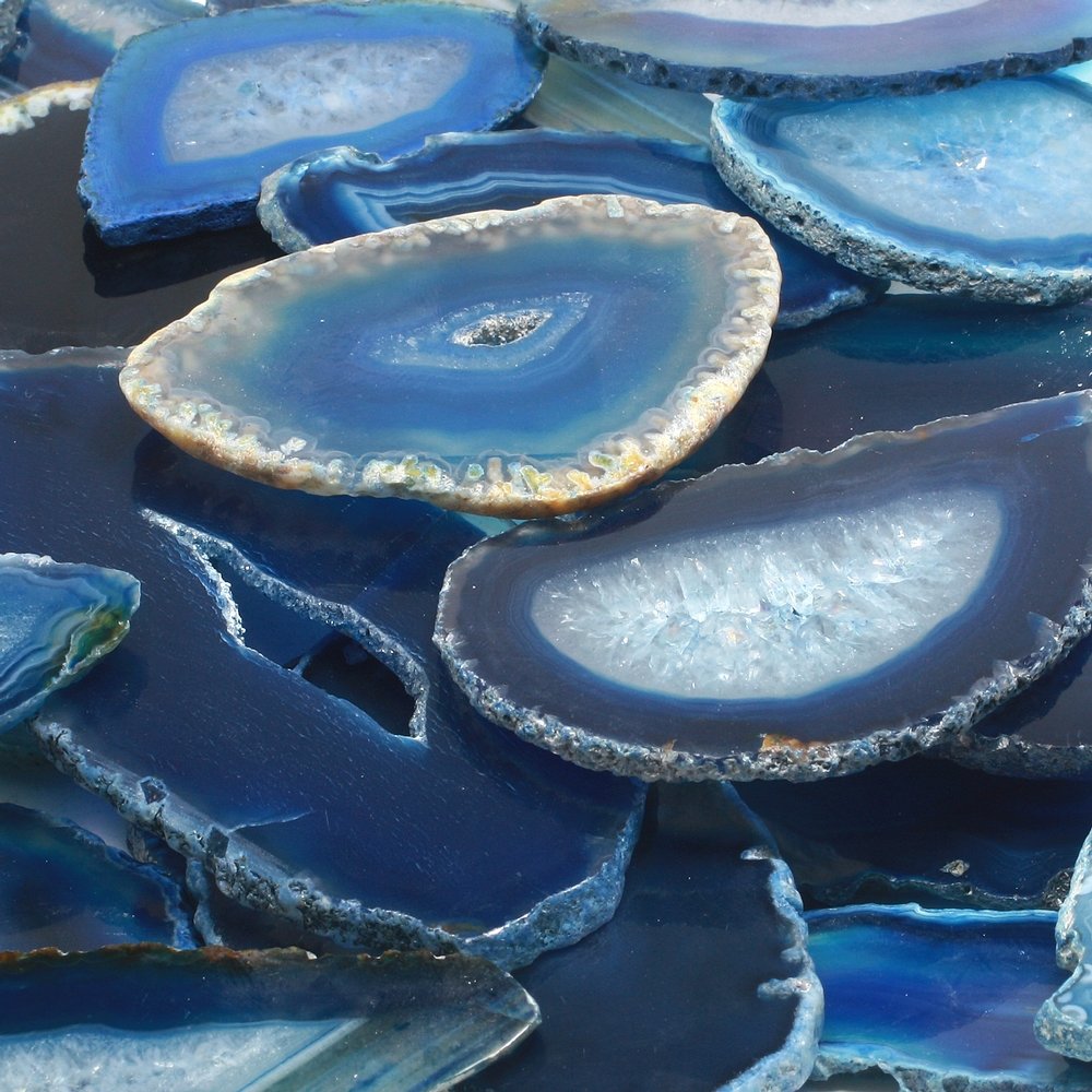Blue Agate is striking in any setting. When displayed in front of a light source the colours glow wonderfully. Great as a decoration or gift, either singly or grouped with other colours and stones.