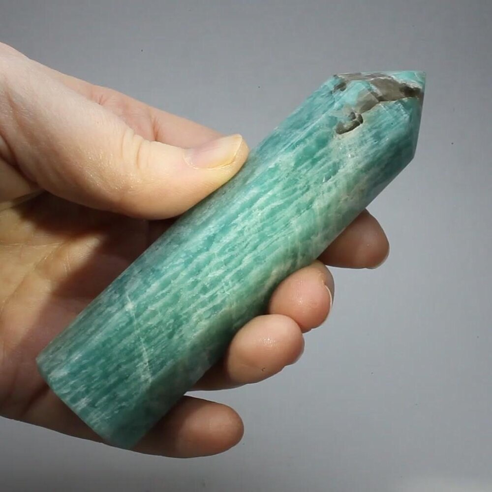 Amazonite is a beautiful stone associated with self-determination and self-confidence. It is said to lift sadness and protect you from electromagnetic stress. For yourself or a loved one, this amazonite point would make a great gift.