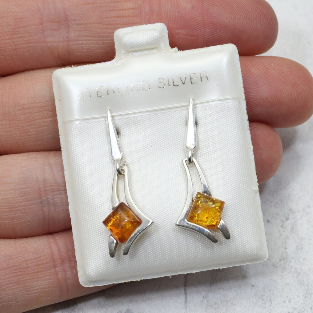 Amber 925 Silver Drop Earrings.
