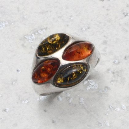 A beautiful two stone Amber & Silver Ring. Set in a solid 925 sterling silver setting, that displays the Amber to the best effect.