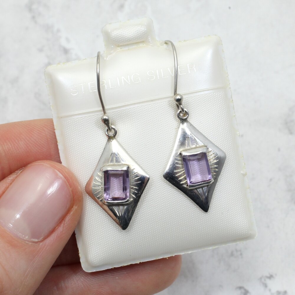 Amethyst Art Deco 925 Silver Drop Earrings.