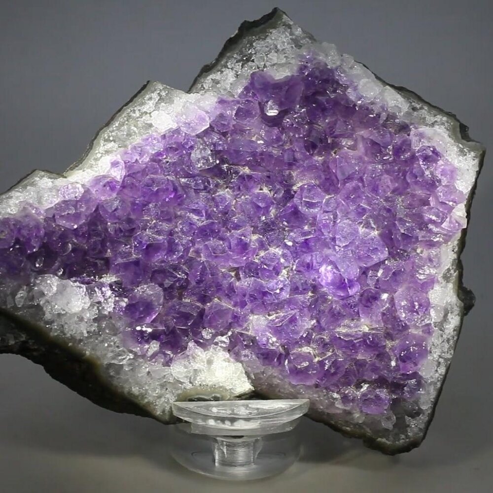 With lustrous crystal points of deep purple, this Amethyst Cluster sparkles beautifully as the light is reflected from its crystal faces.