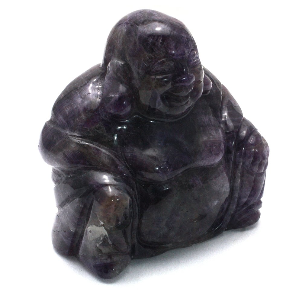 These Sitting Buddha Statues have been expertly hand carved out of Amethyst with fine detail and precision. Each piece is unique, showing off the different quality of the stone and the craftsman's skill.