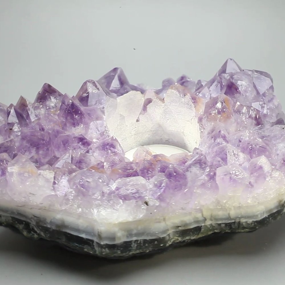 This beautiful Amethyst Tea Light Candle Holder would make an unusual and distinctive gift for a loved one or a special addition to any crystal collection. The rich violet colour of amethyst is sure to look great in any environment.