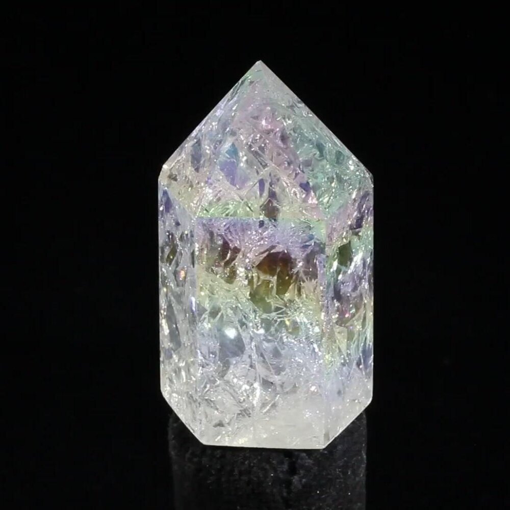 This Angel Aura Fire & Ice quartz point is a stone of new beginnings and profound growth, cutting through the old to reveal the soul's purpose and showing how we create our own reality.