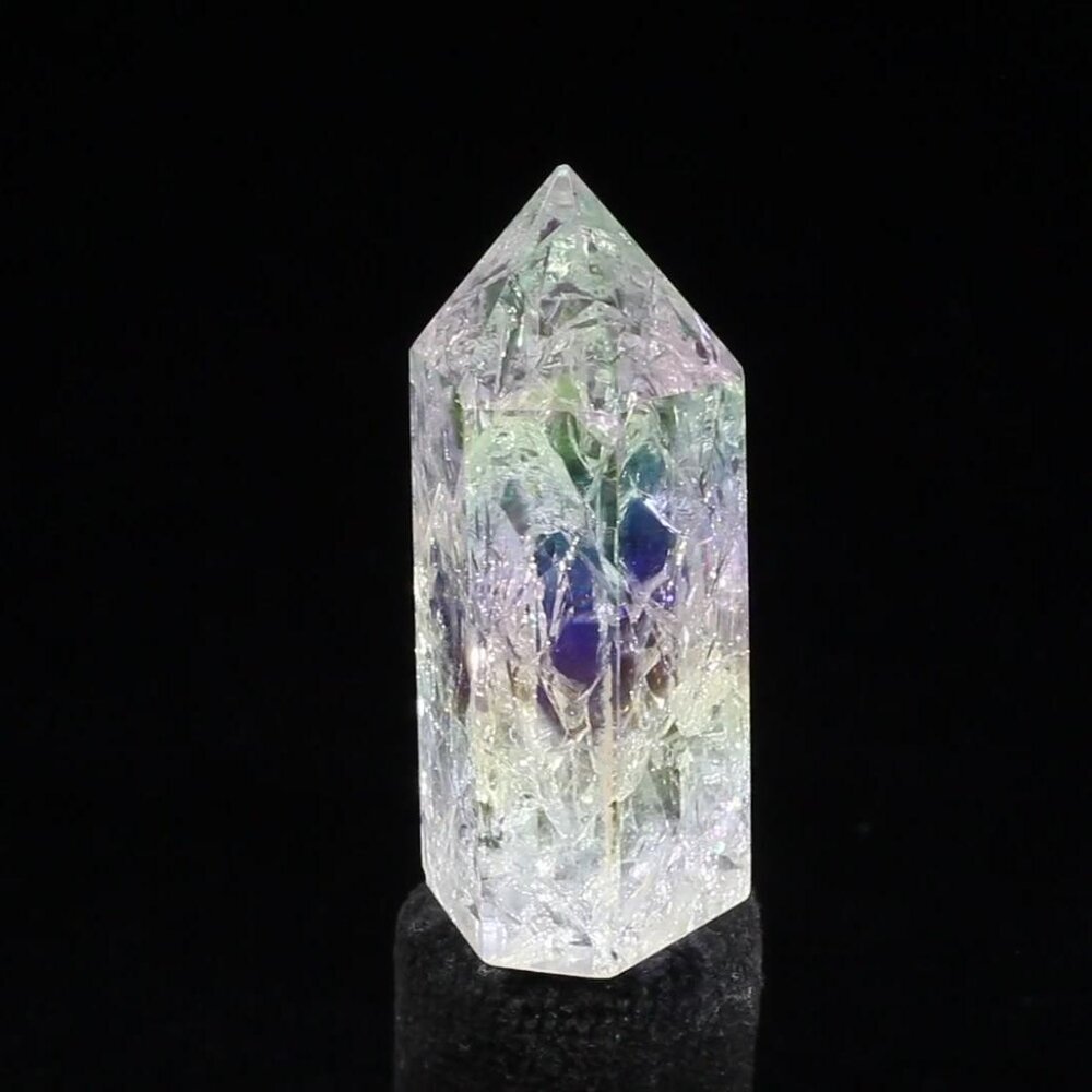 The Angel Aura coating helps to protect goals and dreams. Keep this crystal near you while you set goals for your day or week and envision each new month and year.