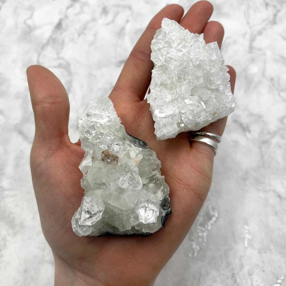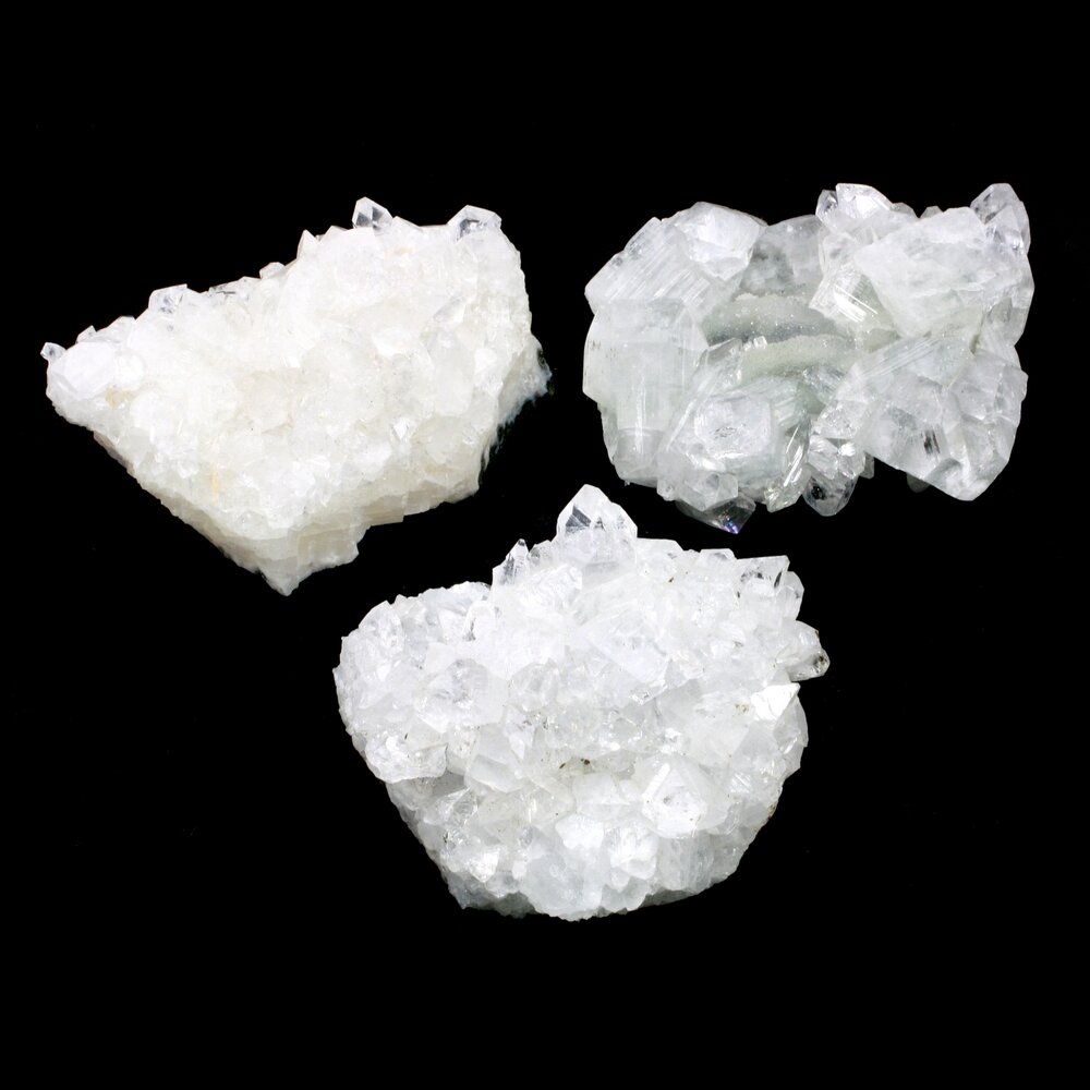 Apophyllite is calming and tranquil, and encourages honesty to self and others. It is excellent in stressful situations, and for clearing negative thought patterns. When placed in a room, an apophyllite cluster makes an excellent space clearer.