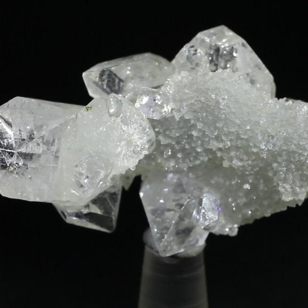 Apophyllite is a tranquil stone believed to have a stress-reducing effect. It is said to clear negative thought patterns and create a conscious connection between the physical and the spiritual. An apophyllite cluster is an excellent space clearer ideal for crystal healing.