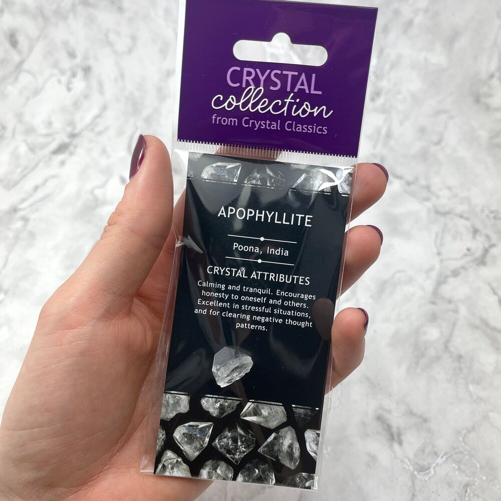 This crystal comes with a handy reference card describing all key mineral properties and crystal healing attributes. For more information visit our CrystalAge.com Apophyllite Stone Type page.