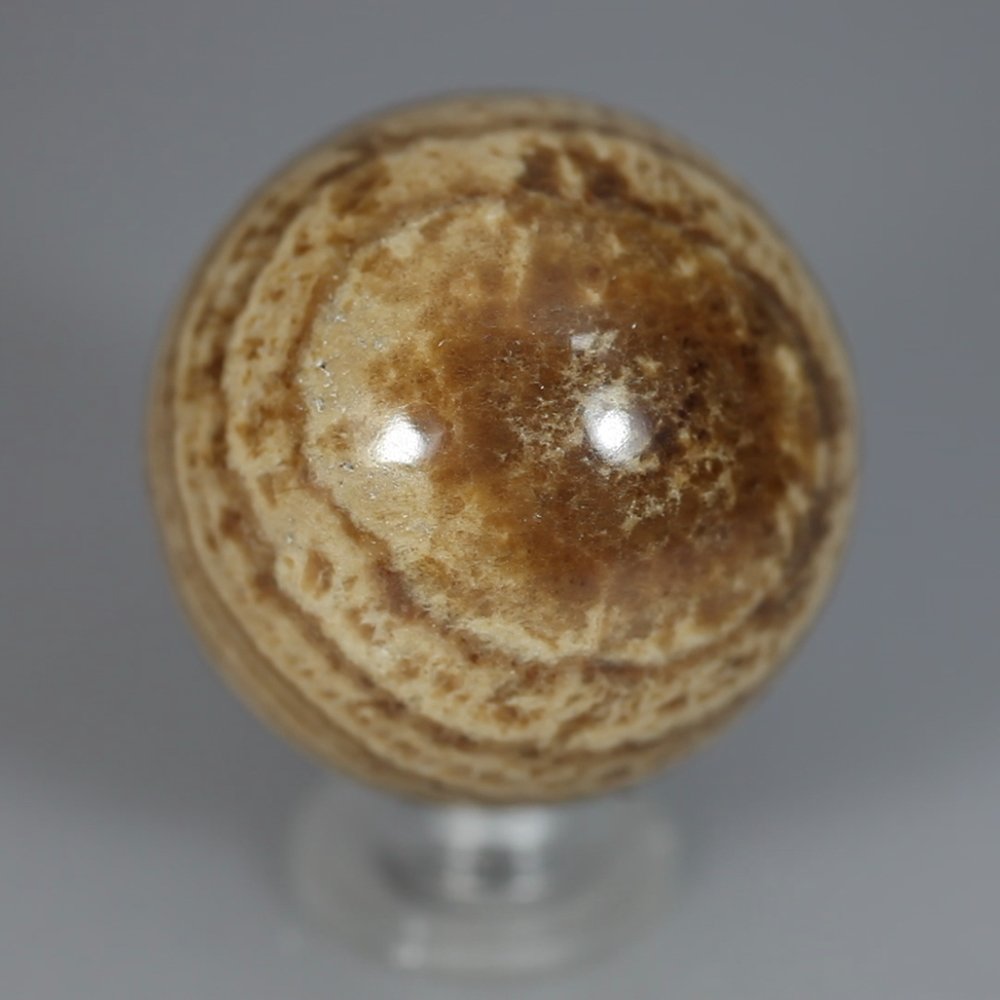 With eye catching pattern and detail this Brown Aragonite Crystal Sphere from Peru has a truly pretty finish. It features bands of light and dark brown layers that have been highly polished for a smooth finish.