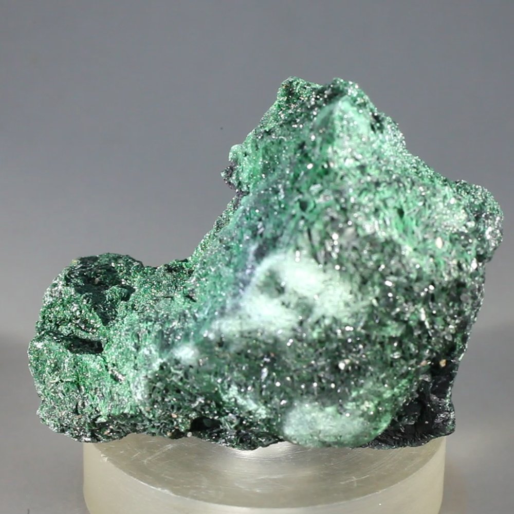 A rare and attractive specimen of Atacamite. We are one of the very few sellers of this exquisite mineral from Mount Gunson in Southern Australia. This specimen was discovered 40 years ago and displays radiating groups of lustrous crystals of the deepest green sitting on blue-green Chrysocolla.