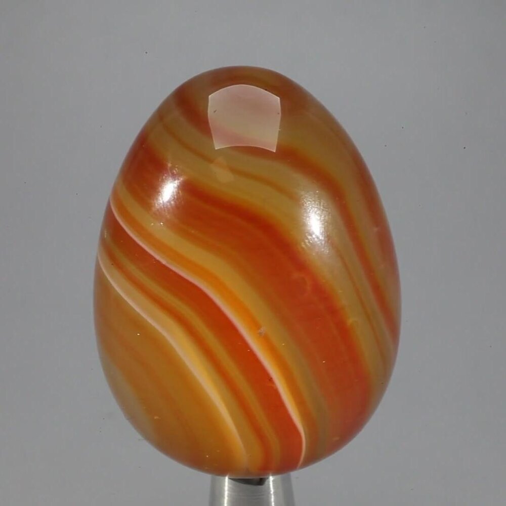 Enjoy beautiful crystal colour with this fine Banded Red Carnelian Crystal egg. This example has particularly striking and attractive white banding contrasting beautifully with the warm reds and oranges of the carnelian.