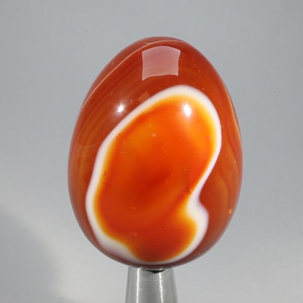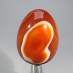 Enjoy beautiful crystal colour with this fine Banded Red Carnelian Crystal egg. This example has particularly striking and attractive white banding contrasting beautifully with the warm reds and oranges of the carnelian.
