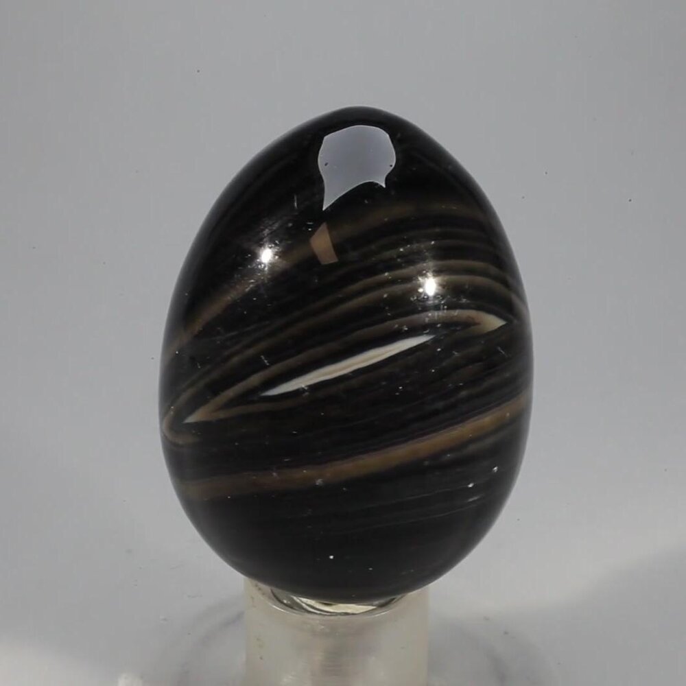 Enjoy beautiful crystal colour with this fine black onyx gemstone egg. This example has particularly striking and attractive white banding contrasting beautifully with the jet black onyx.
