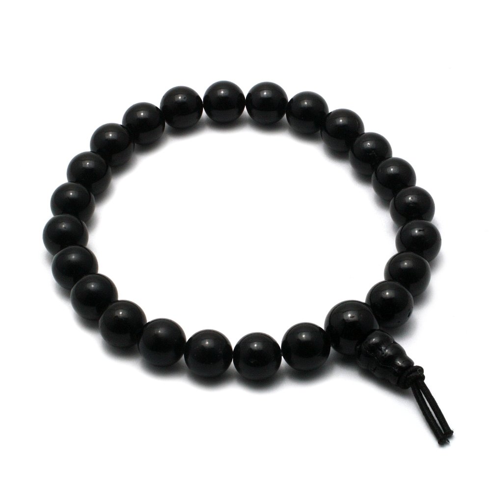 This Black Obsidian Power Bead Bracelet has been carefully shaped and polished to bring out the beautiful colour of the stone. It is strung on coordinating elastic that fits any wrist, making it comfortable and easy to wear.