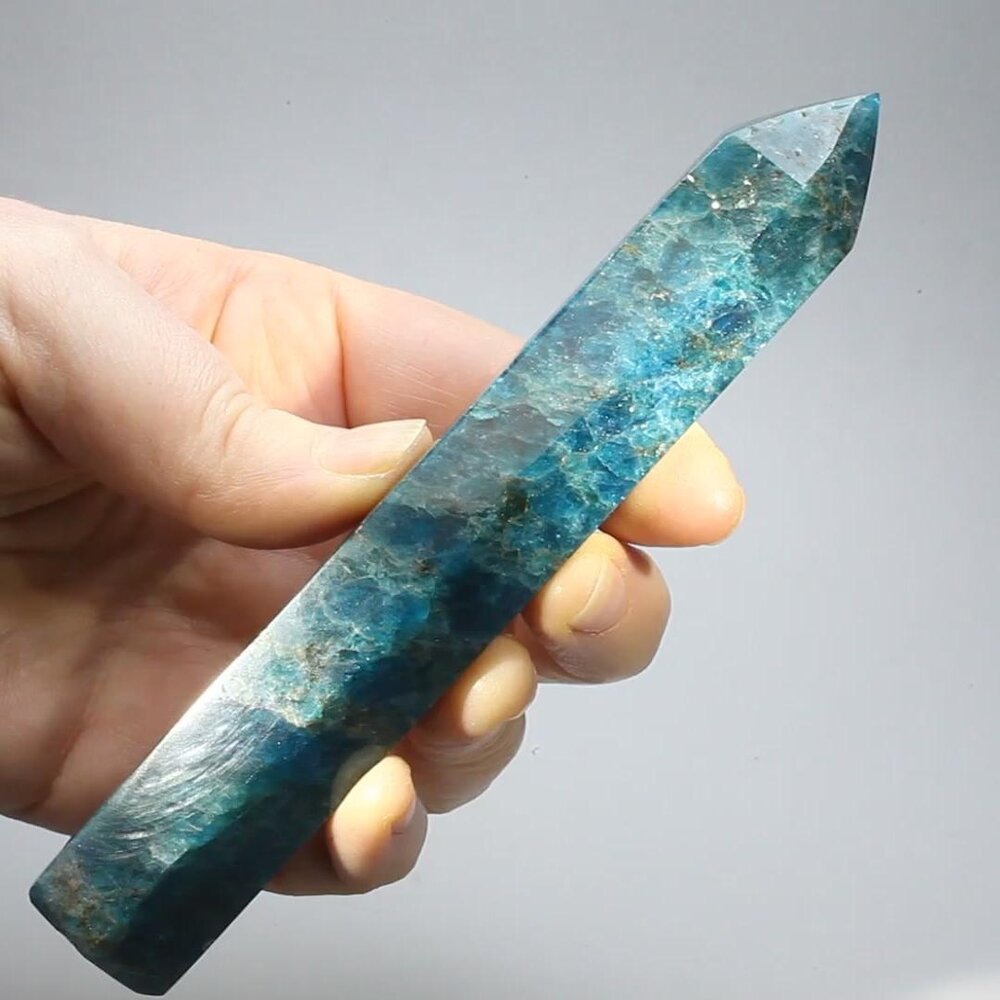 Blue Apatite stimulates energy. Apatite encourages us to be energetic, extroverted and lively, and instils motivation and drive. It engenders optimism as well as a feeling of community.