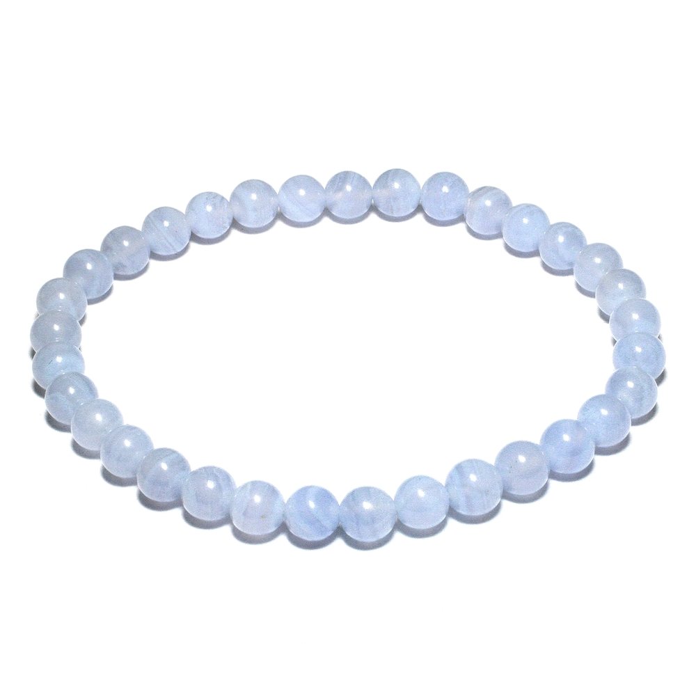 This Blue Lace Agate 6mm Round Bead Bracelet has been carefully shaped and polished to bring out the beautiful colour of the stone. It is strung on coordinating elastic that fits any wrist, making it comfortable and easy to wear.