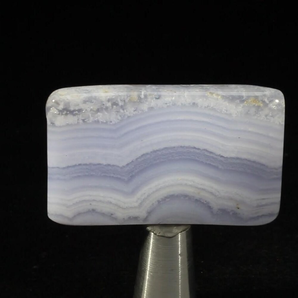 Blue Lace Agate is a Blue chalcedony with a layering of white quartz or jasper; it is calming and bestows optimism. Good for communication, especially in friendship, as it reflects both aspects of communication: the ability to listen and understand as well as the ability to communicate clearly.