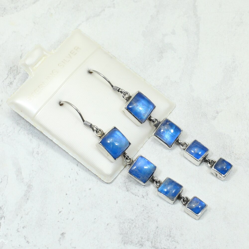 Blue Moonstone 925 Silver Drop Earrings.