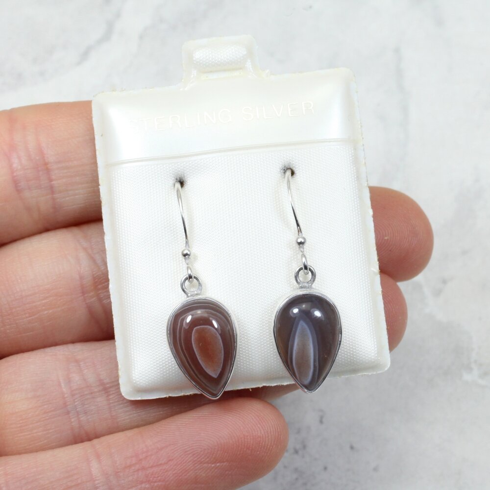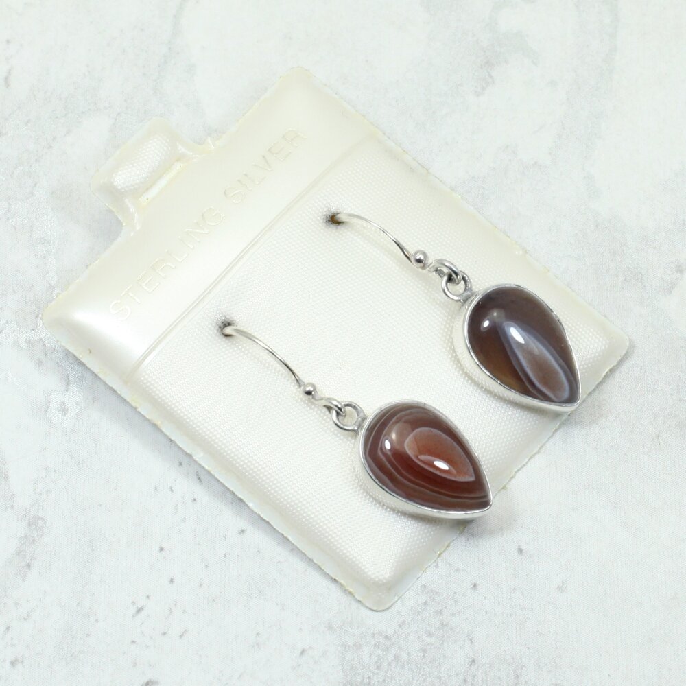 Botswana Agate 925 Silver Drop Earrings.