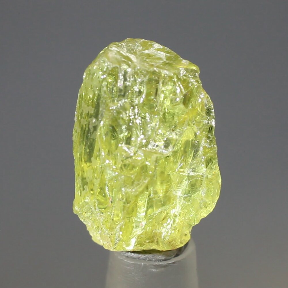A large and lustrous yellow-green apatite crystal.