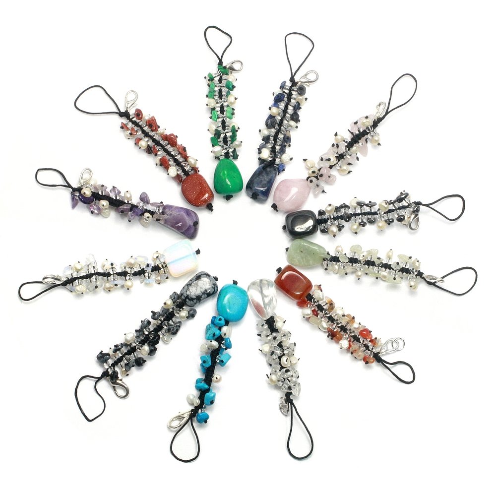 Each crystal keyring is made from a smooth tumble stone, gem chips, and pearls. Each stone is has its own positive properties which work together to bring you the effect you desire. Perfect for attaching to your bag, keys or mobile phone. The crystals are attached along a sturdy braided string, with loop and clip so that you can hang it anywhere.