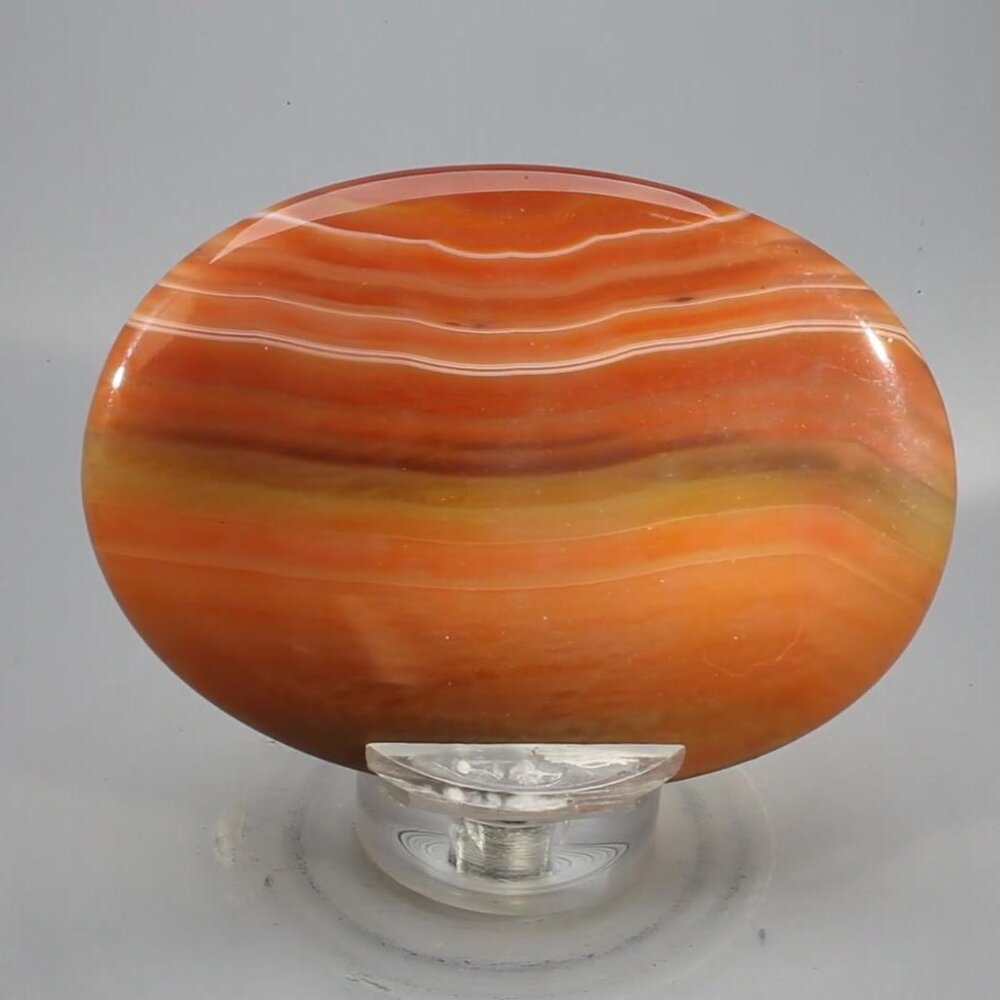 This Carnelian Palmstone has been selected for its gorgeous range of soft oranges juxtaposed with smoky grey and pockets of transparency. It is a top quality piece and the ideal size to hold or place on the body for crystal healing.