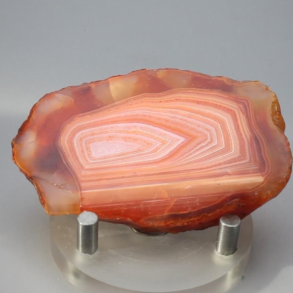 This Carnelian Polished Slab has been selected for its gorgeous range of soft oranges juxtaposed with smoky grey and pockets of transparency. It is a top quality piece and the ideal size to hold or place on the body for crystal healing.