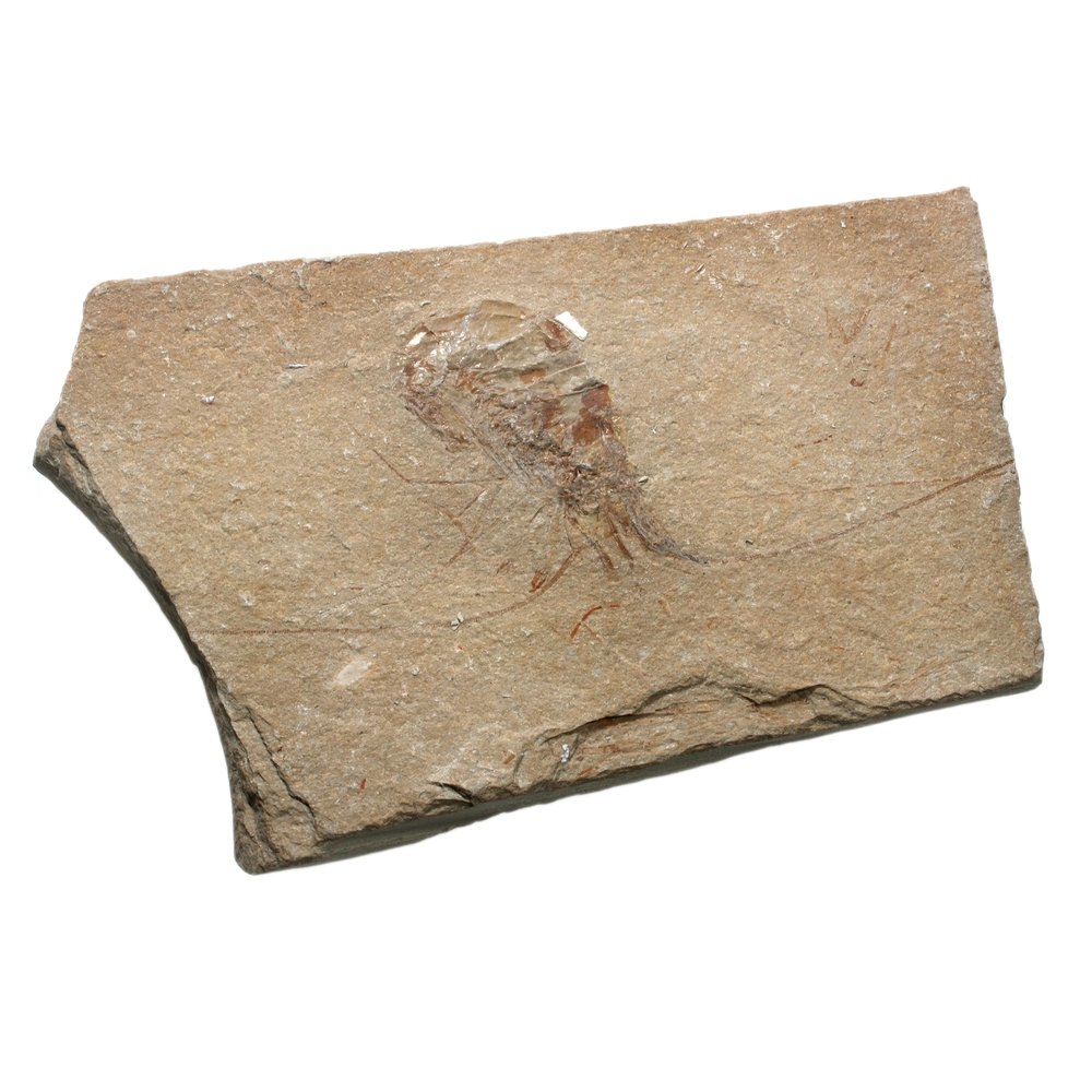 A beautifully preserved Shrimp Fossil in a stone plaque.