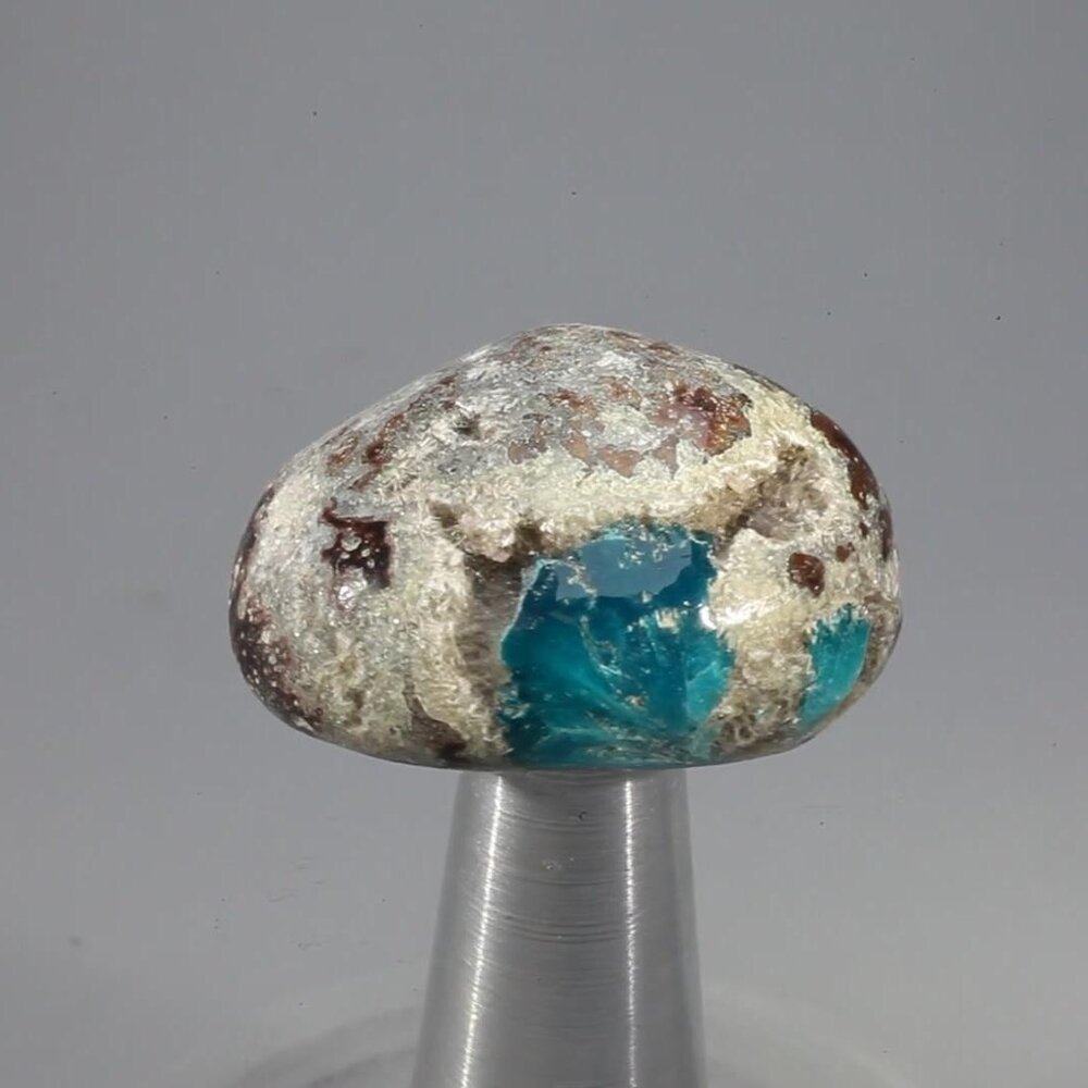 Cavansite is a most unusual and attractive mineral. It forms as beautiful deep-turquoise radiating crystal groups, usually sitting on a bed of clear Stilbite crystals within a contrasting matrix of brown Heulandite.