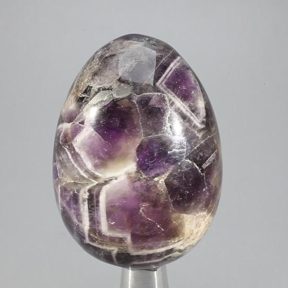 Display your Chevron Amethyst Crystal Egg on its own stand or in a bowl with other crystal eggs or gemstones. Surprise your loved ones with a beautiful egg sourced from Crystal Age's extensive selection.