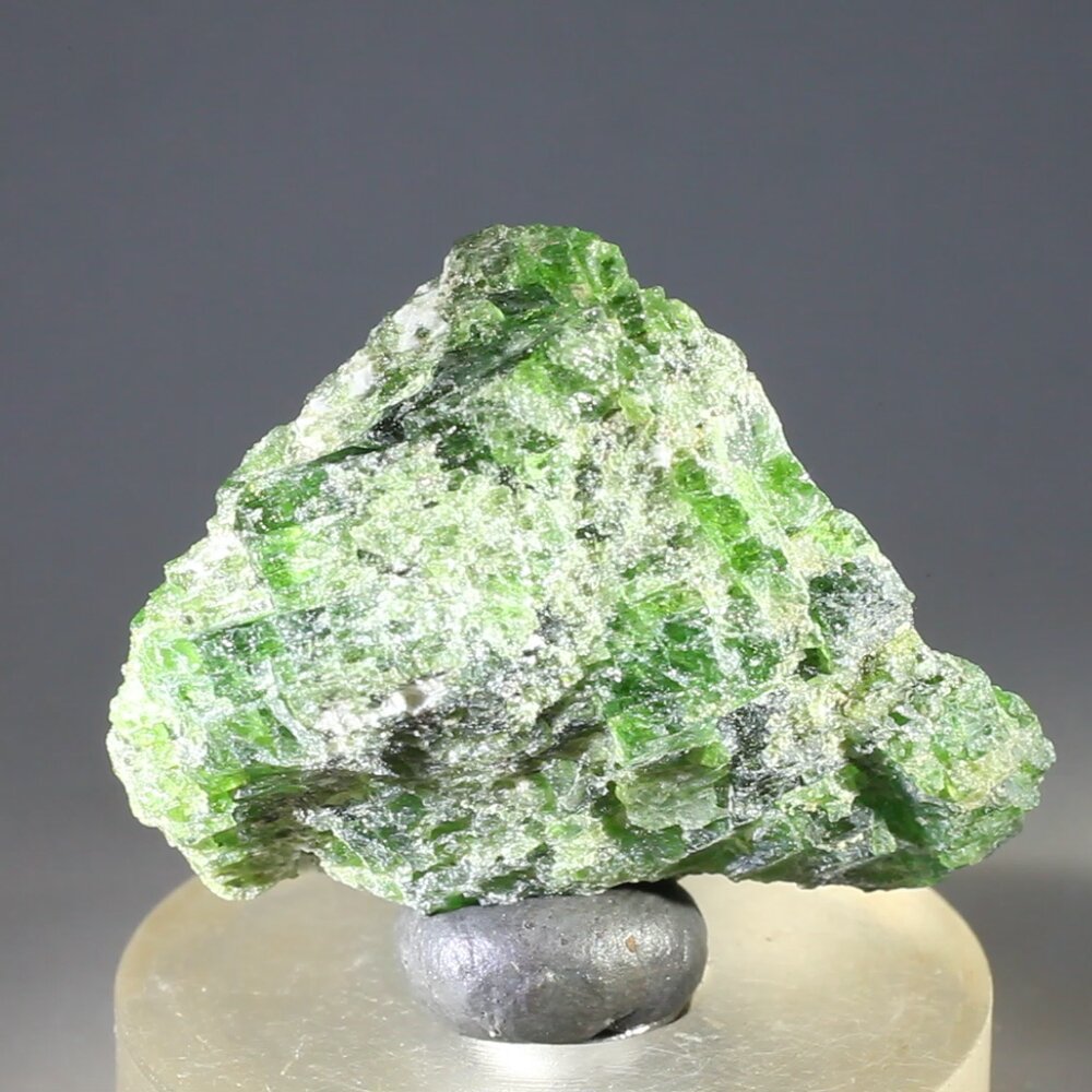 A vibrant green Chromian Diopside crystal from Russia. This crystal has been selected for its larger size and depth of colour. A beautiful crystal for the discerning crystal healer or collector.