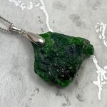 This unique Chromian Diopside Healing Crystal 925 Silver Pendant is set in a 925 sterling silver bail.
