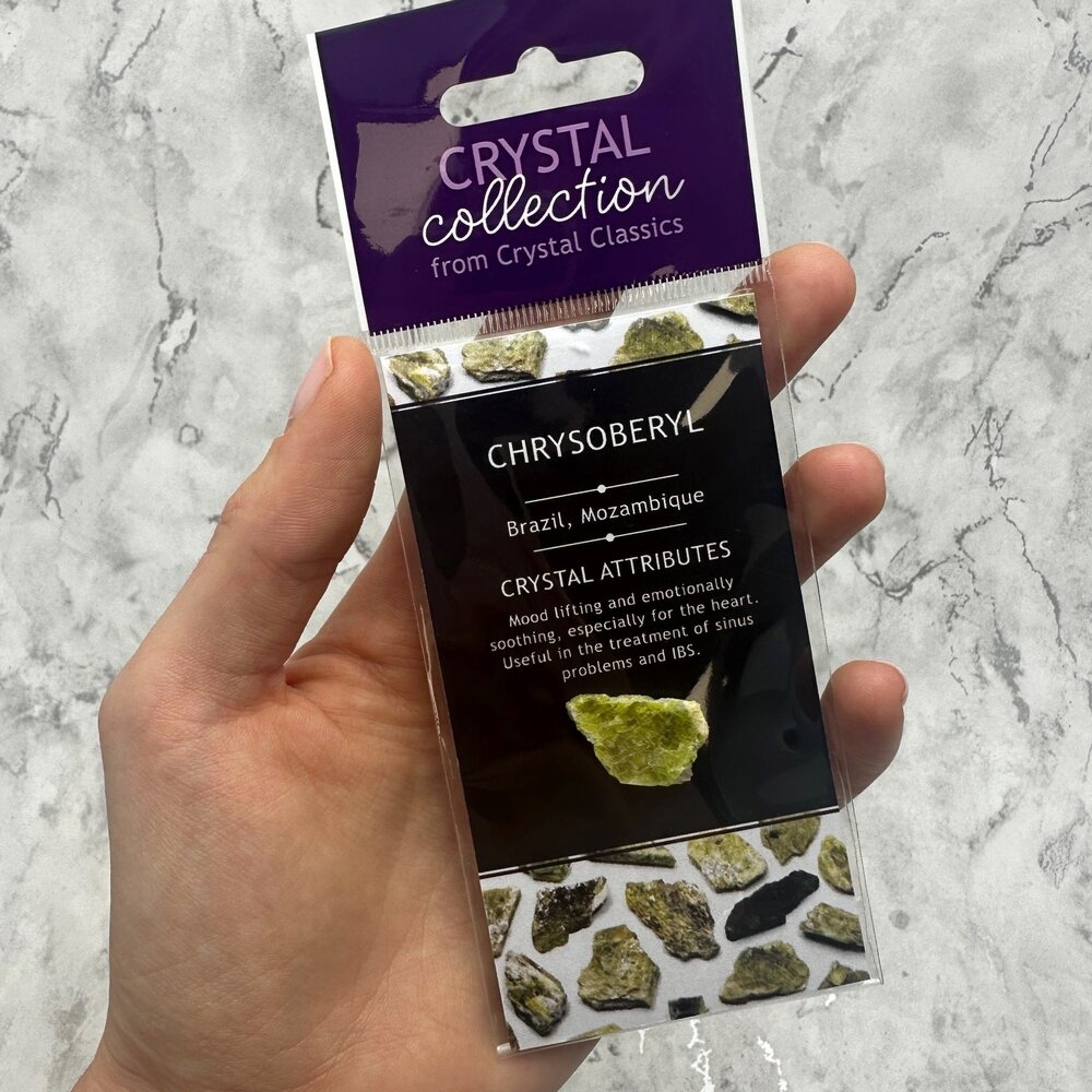 This crystal comes with a handy reference card describing all key mineral properties and crystal healing attributes. For more information visit our CrystalAge.com Chrysoberyl Stone Type page.