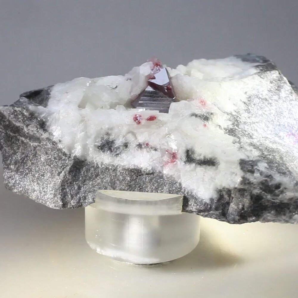 Lustrous red crystals of Cinnabar in white Dolomite and Quartz, from the famous Chatian Mine, Fenghuang Co., Hunan, China.