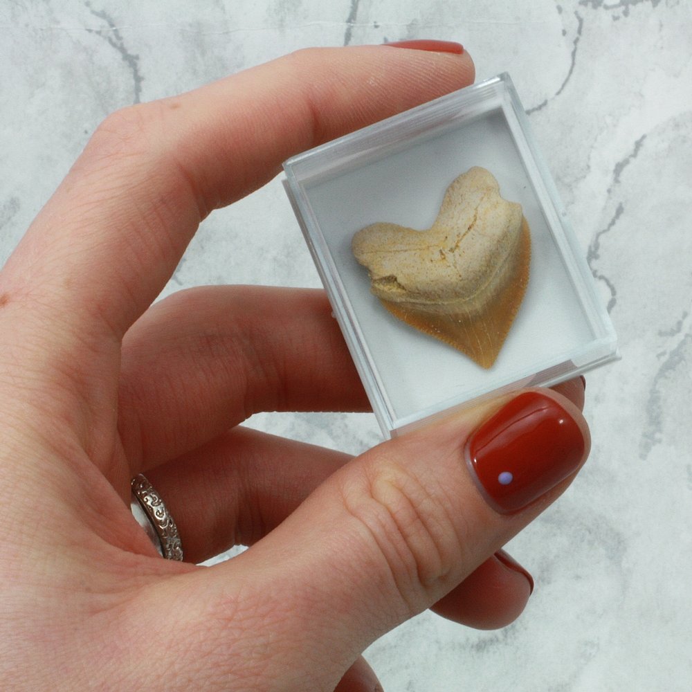 The Shark Tooth is mounted within a Collectors box. Each piece is unique and will vary slightly in size and shape.
