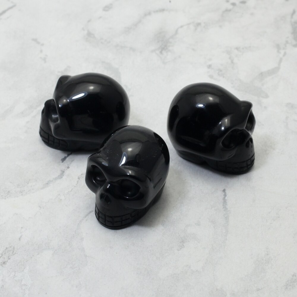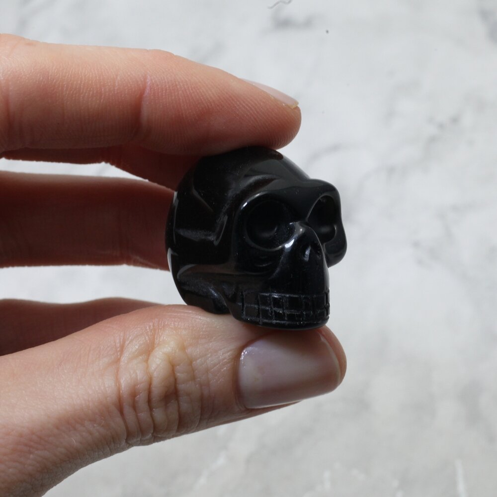 This polished obsidian crystal skull is a classic piece and a great little gift. It has a great shape with detailed carving and a flawless finish. Ideal for healing and display.