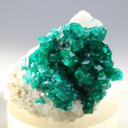 This is a good quality Dioptase specimen from Kazakhstan displaying a striking emerald green colour with well defined crystal edges and faces.