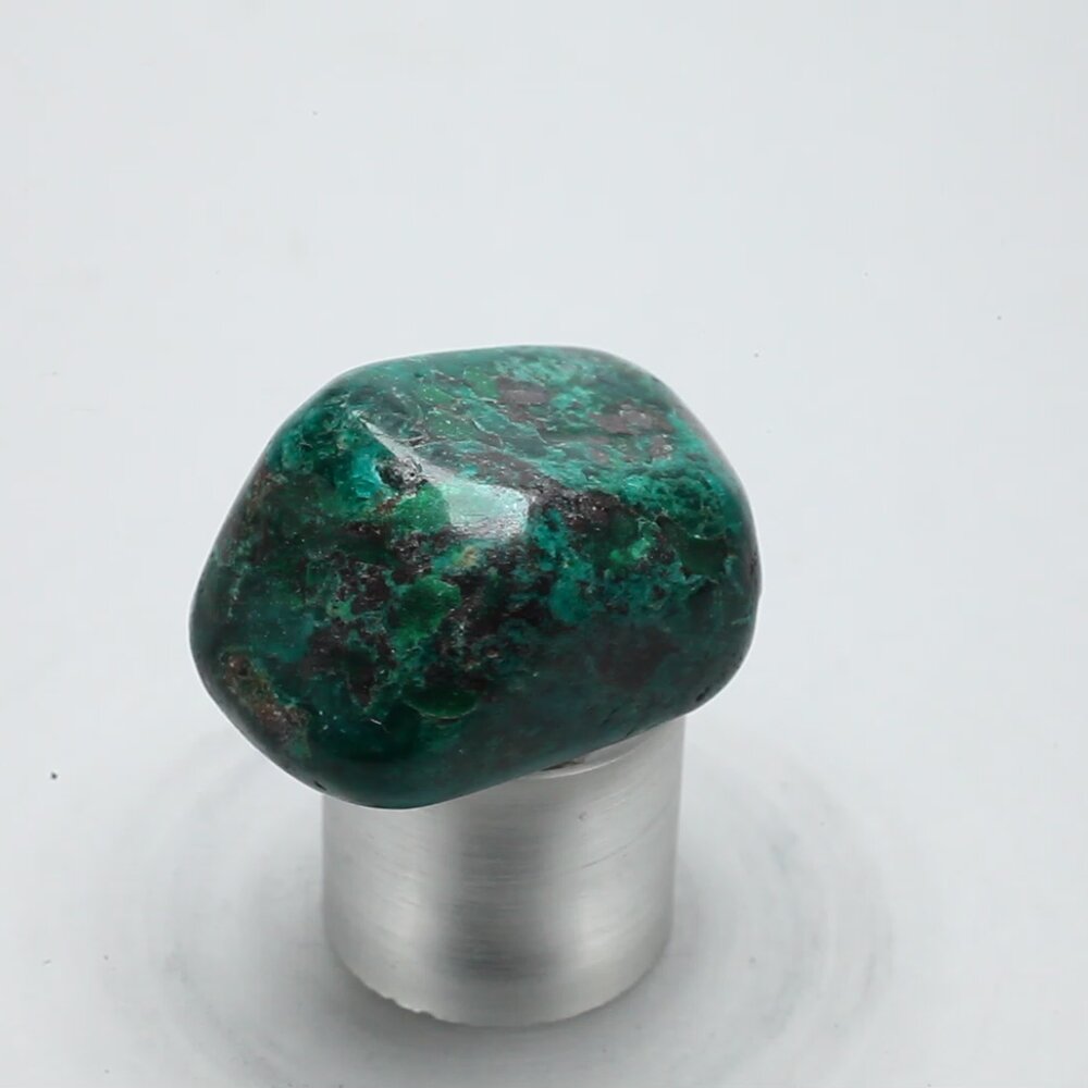 Dioptase is a beautiful emerald green copper mineral often found in close association with Malachite, Chrysocolla and ocasionally, Shattuckite. These tumblestones originate from Katanga, Democratic Republic of Congo.