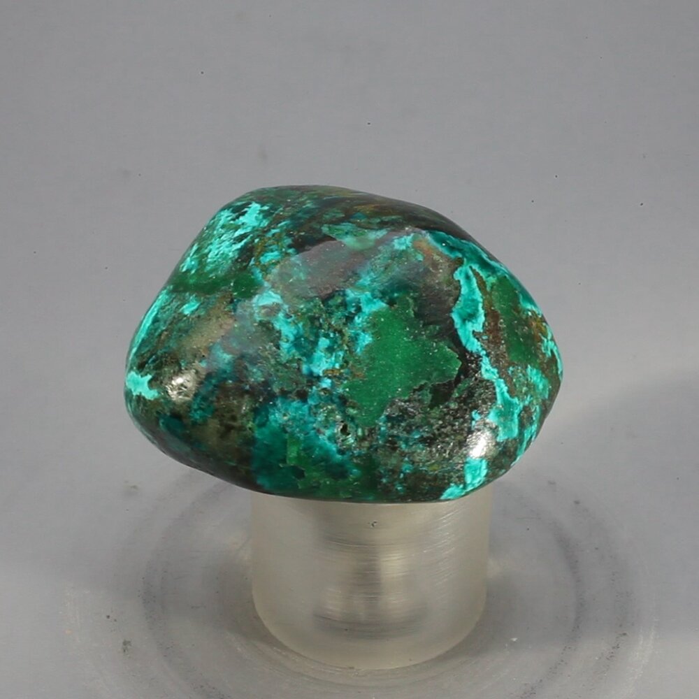Dioptase is a beautiful emerald green copper mineral often found in close association with Malachite, Chrysocolla and ocasionally, Shattuckite. These tumblestones originate from Katanga, Democratic Republic of Congo.