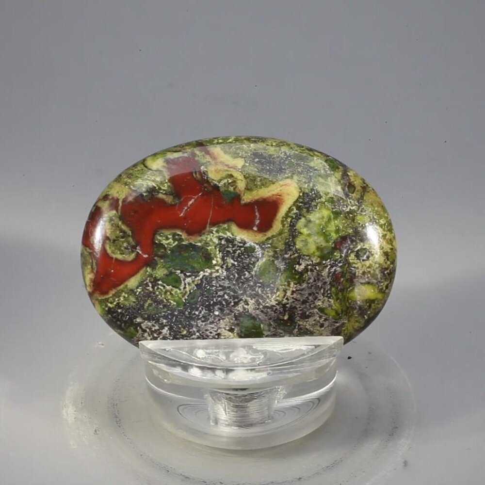 This Dragons Blood Thumbstone has been carefully shaped and polished to bring out the deep red and forest hues of the stone.  This thumbstone is the perfect size to hold and is said to relieve stress and harness the energy of the crystal.