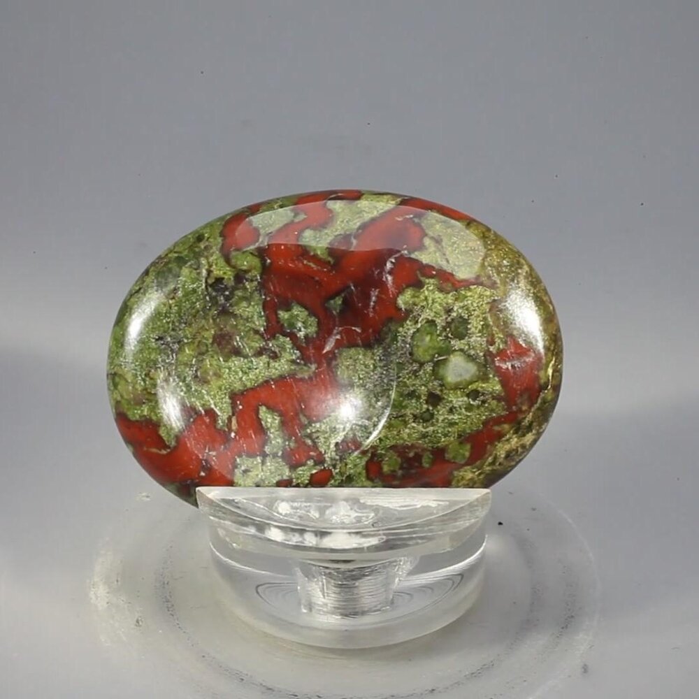 This Dragons Blood Thumbstone has been carefully shaped and polished to bring out the deep red and forest hues of the stone.  This thumbstone is the perfect size to hold and is said to relieve stress and harness the energy of the crystal.
