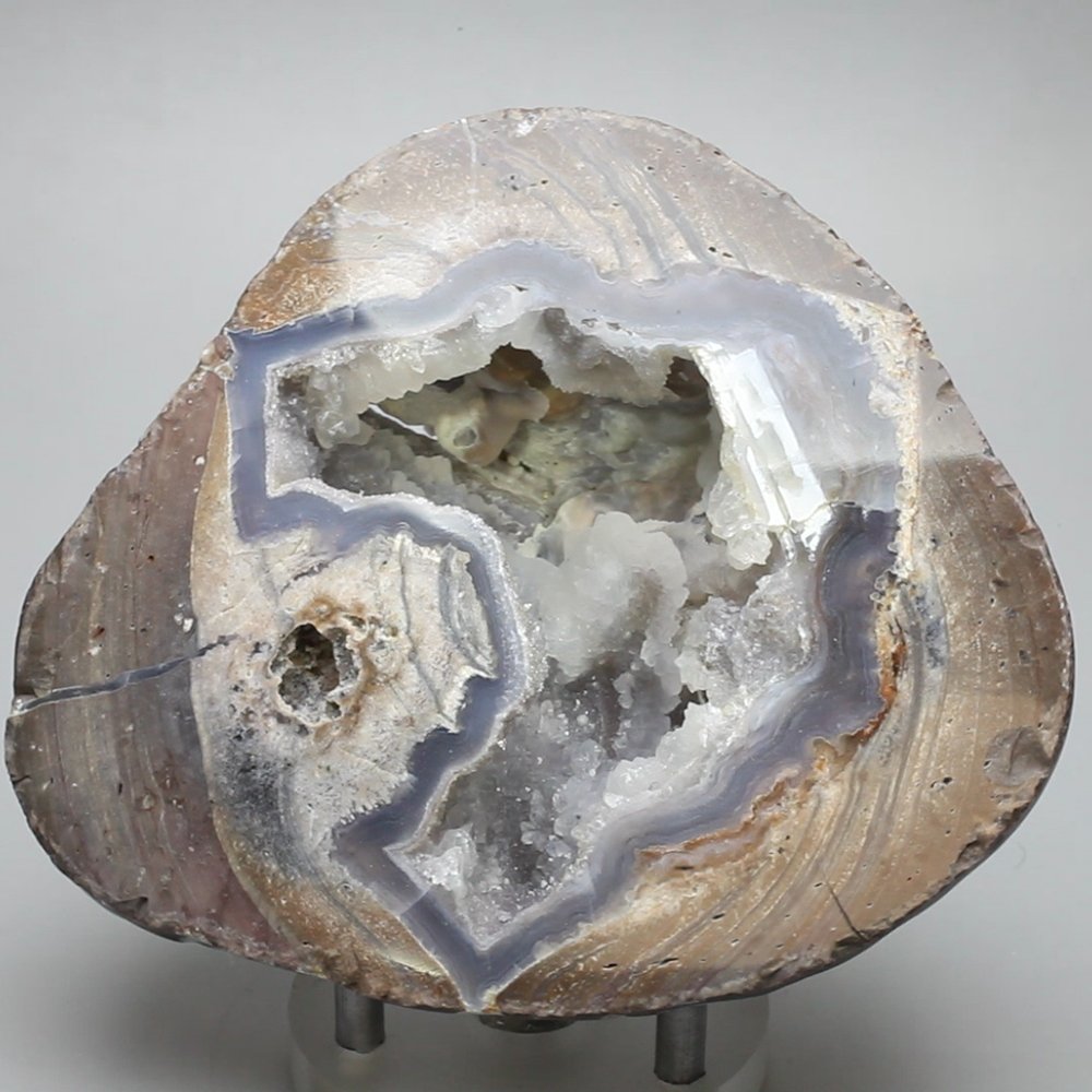This beautiful Dugway Agate Geode comes from Dugway, Utah. These geodes feature a soft blue pool of chalcedony with shimmering quartz druzy. A wonderful gift for a friend or addition to your collection.