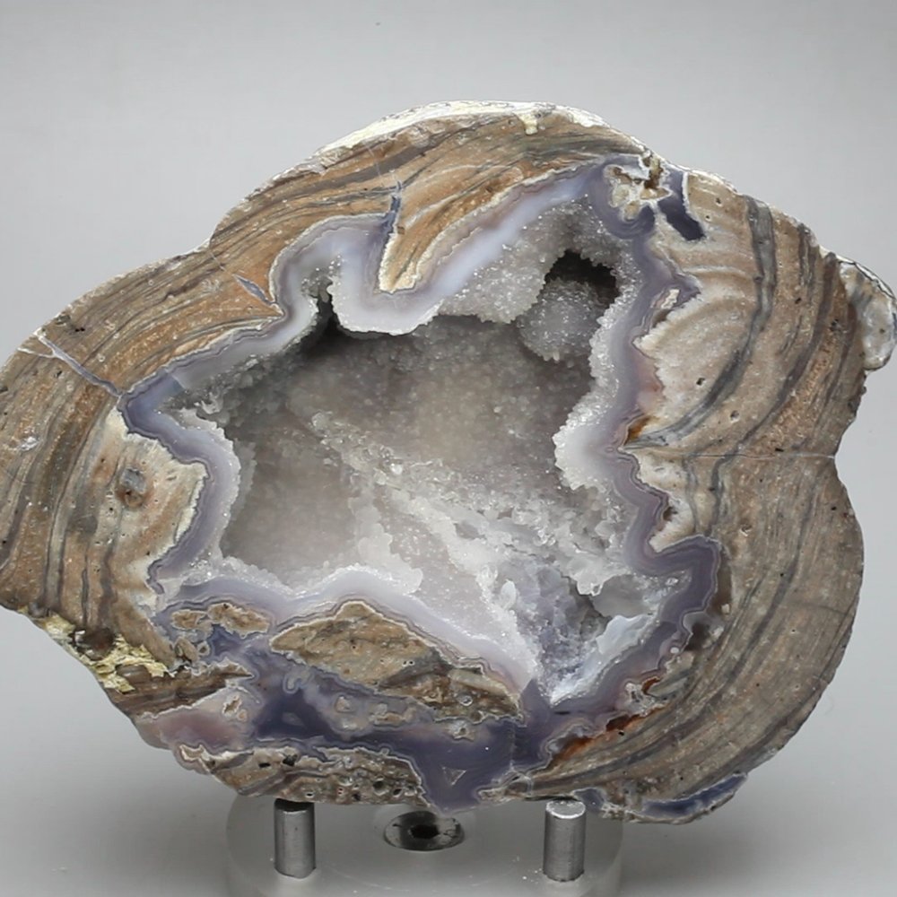 This beautiful Dugway Agate Geode comes from Dugway, Utah. These geodes feature a soft blue pool of chalcedony with shimmering quartz druzy. A wonderful gift for a friend or addition to your collection.