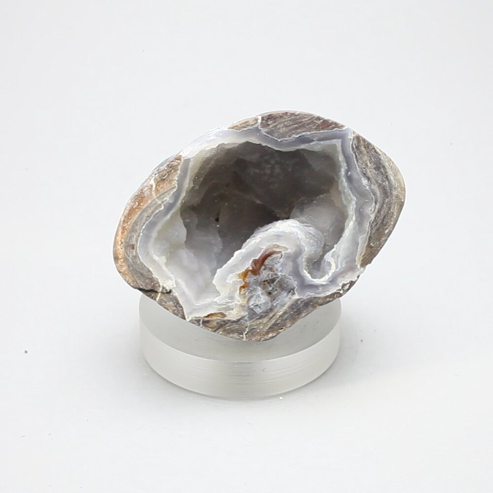 This beautiful Dugway Agate Geode comes from Dugway, Utah. These geodes feature a soft blue pool of chalcedony with shimmering quartz druzy. A wonderful gift for a friend or addition to your collection.