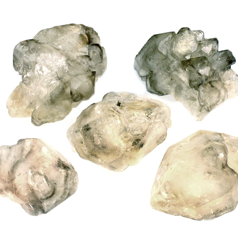 These Elestial Quartz are a smoky tinged variety that grows into formations of striking appearance. They develop overlapping, multi-faceted crystals that deepen from cloudy white to fawn at their terminations.