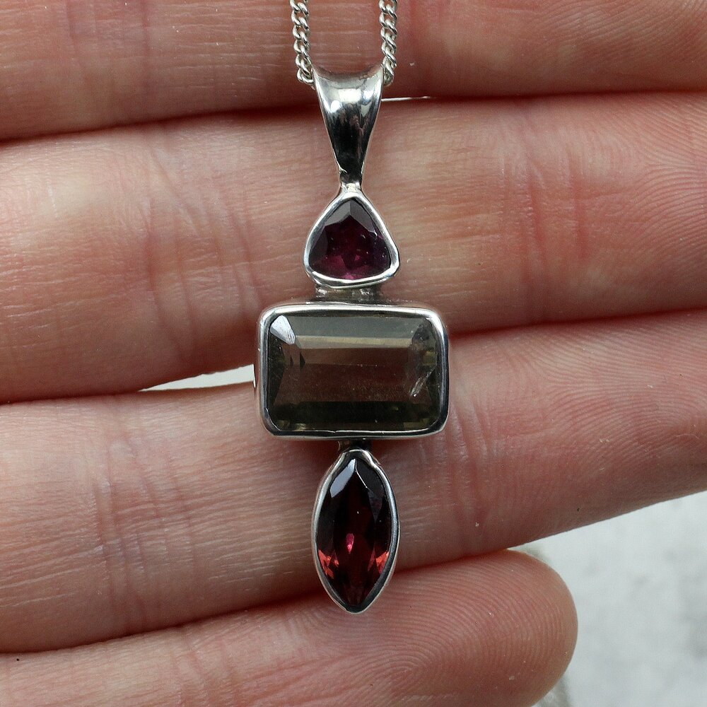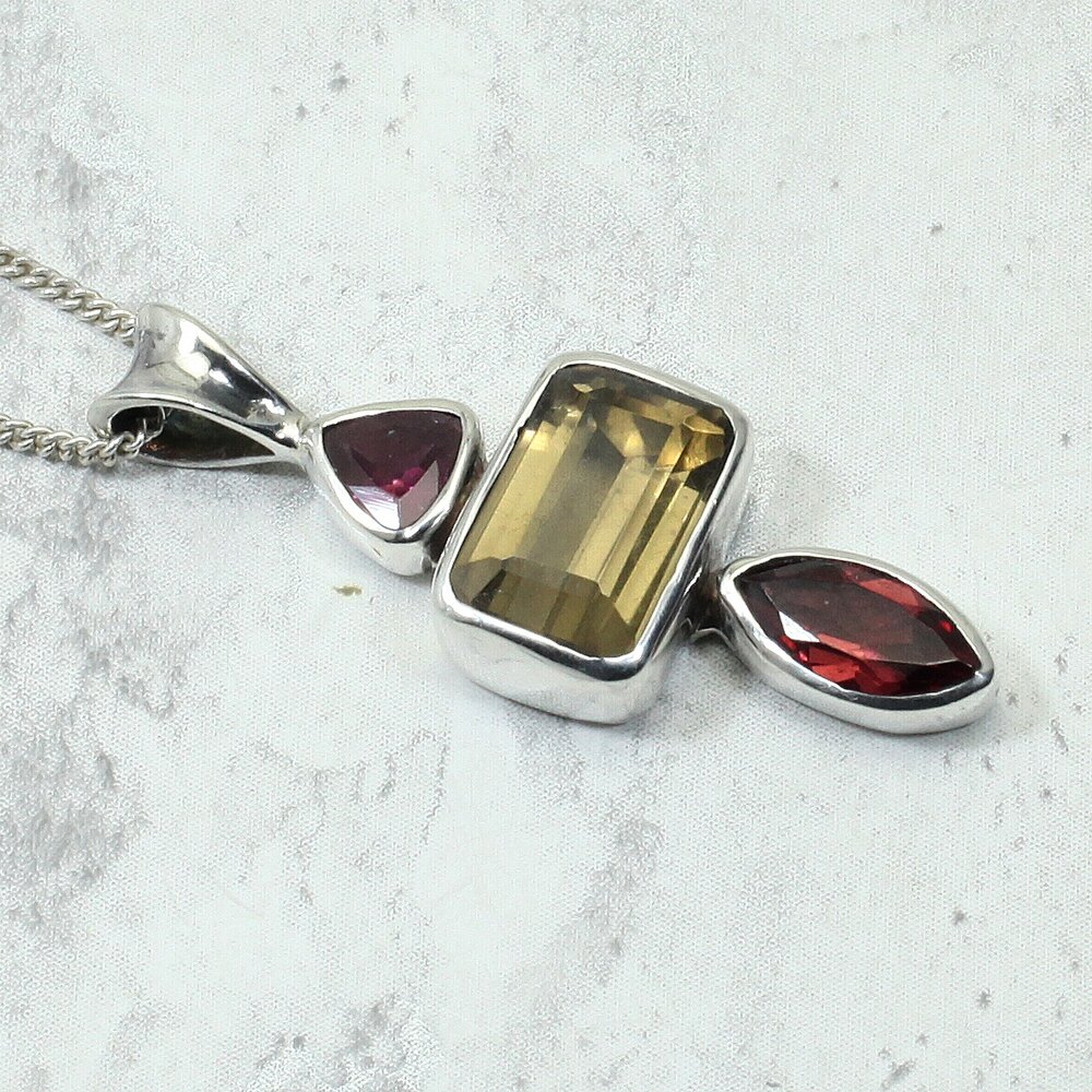 Faceted Garnet & Citrine 925 Silver Pendant.