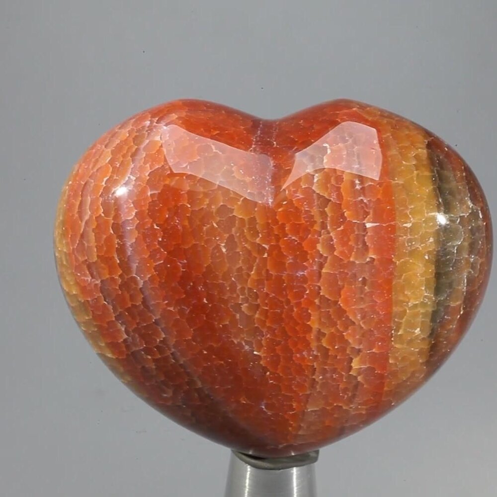 This Fire Agate Crystal Heart is a must for any dedicated crystal collector. Within there is a river of gorgeous colours and texture, finished with a smooth outer and cute heart shape. A pretty fiery colour lets it stand out and compliment any home beautifully.