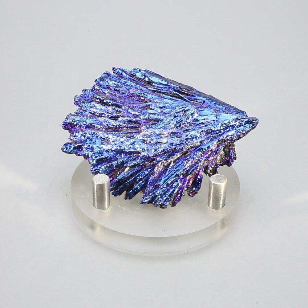 A Black Kyanite crystal with a flame aura coating. This exhibits a fantastic bright iridescence and is exploding with vibrational energy.