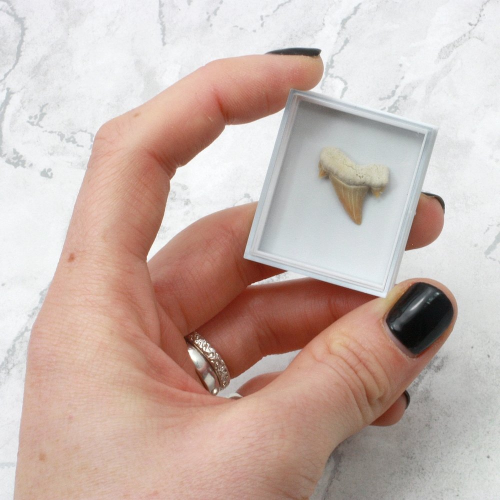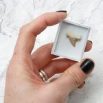 The Shark Tooth is mounted within a Collectors box. Each piece is unique and will vary slightly in size and shape.